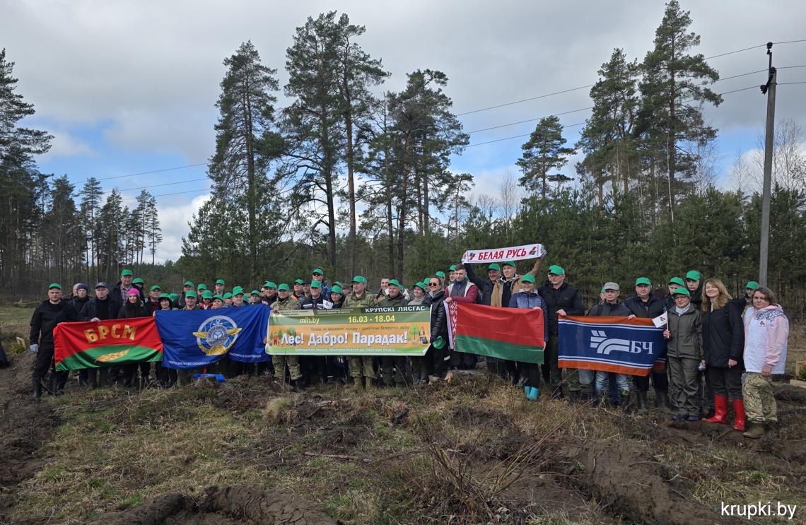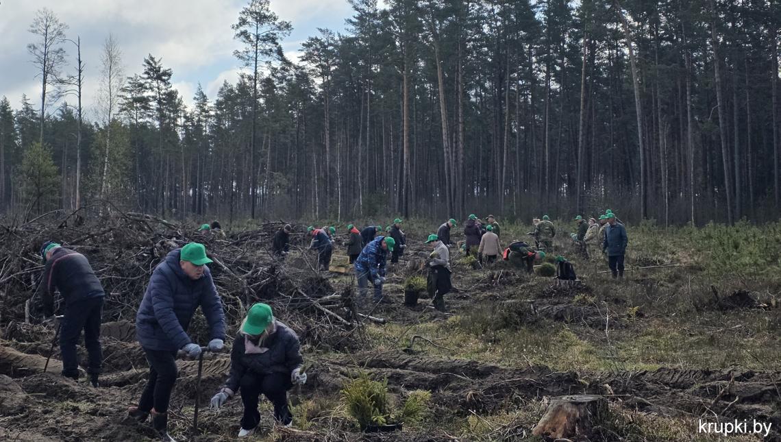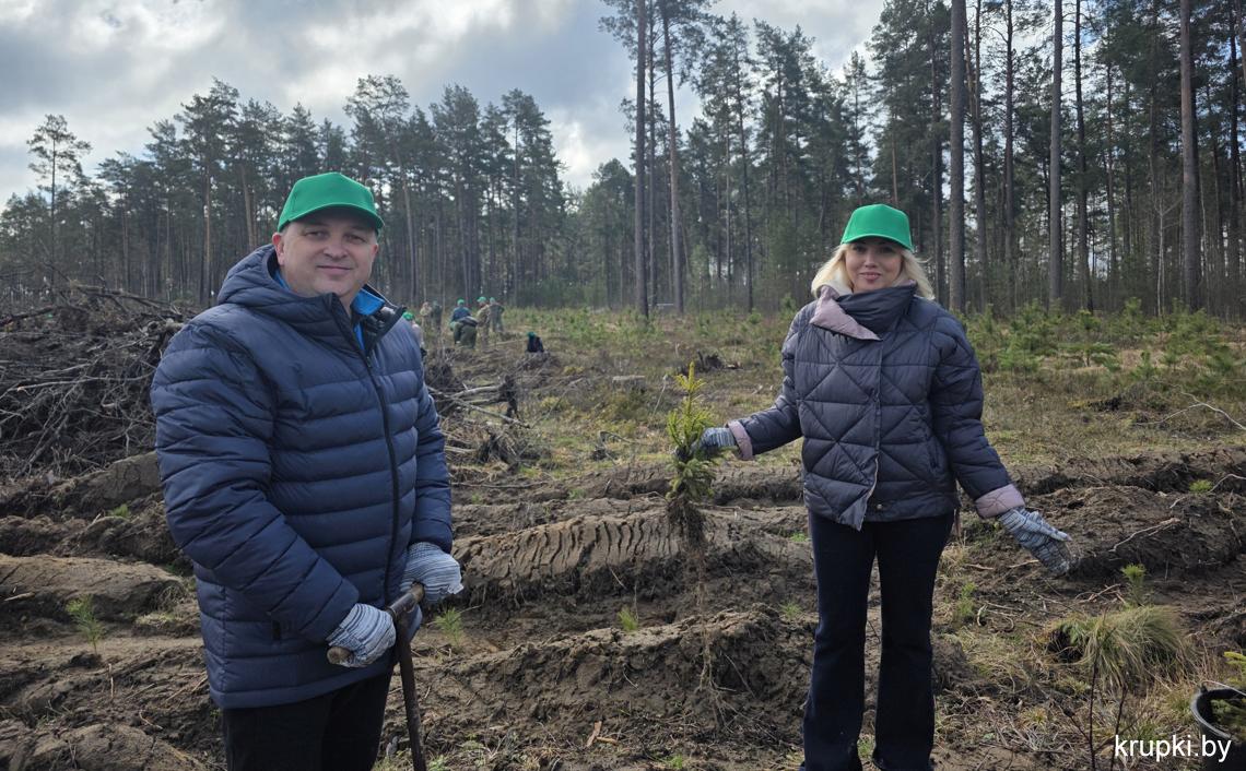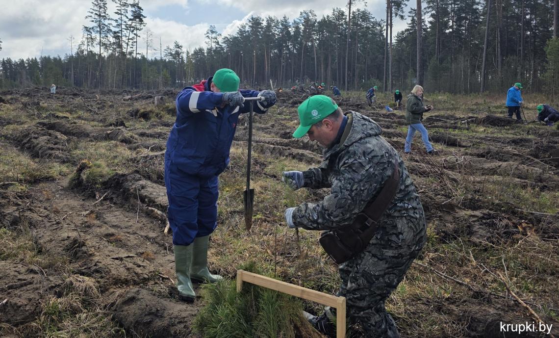 В 76 лесном квартале Бобрского лесничества на делянке площадью 7,6 га трудились сто человек во главе с начальником Белорусской железной дороги Валерием Вереничем.