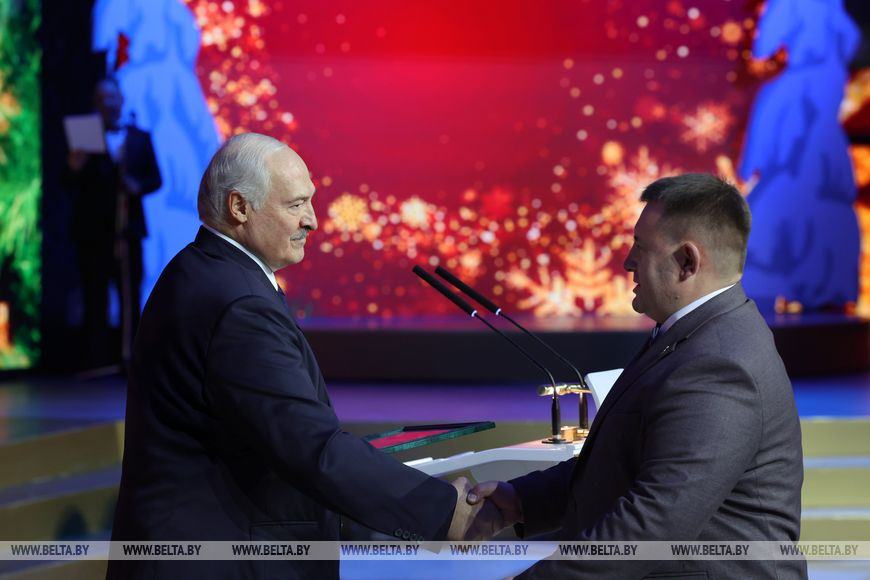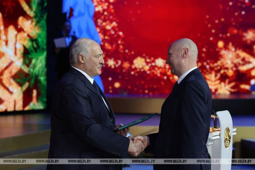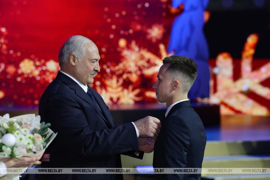 Александр Лукашенко также вручил нагрудные знаки к почетным званиям. Звания "Заслуженный работник средств массовой информации" удостоен директор - главный редактор учреждения Администрации Президента Беларуси "Издательский дом "Беларусь сегодня" Дмитрий Жук, звания "Заслуженный сотрудник органов государственной безопасности" - председатель КГБ Иван Тертель, звания - "Заслуженный мастер спорта" - спортсмен-инструктор национальной команды Беларуси по прыжкам на батуте Республиканского центра олимпийской подготовки по гимнастическим видам спорта Иван Литвинович.