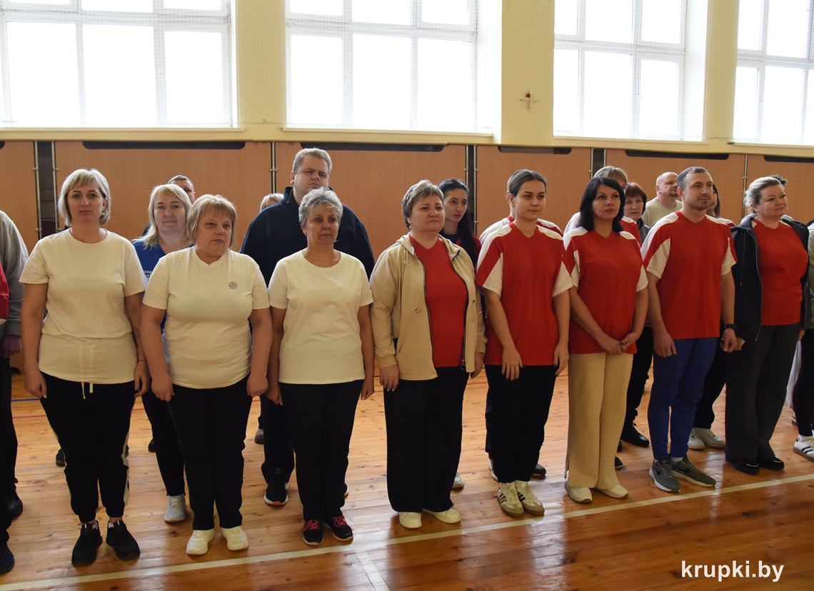 Спартакиада открылась торжественной церемонией. Приветствовала собравшихся начальник управления по образованию, спорту и туризму Крупского райисполкома Татьяна Стибикина. Она отметила, что участие в спортивных состязаниях – это огромная заявка о своей активной жизненной позиции в формировании здорового образа жизни, желании двигаться вперед, доказательство того, что педагогам все по плечу.