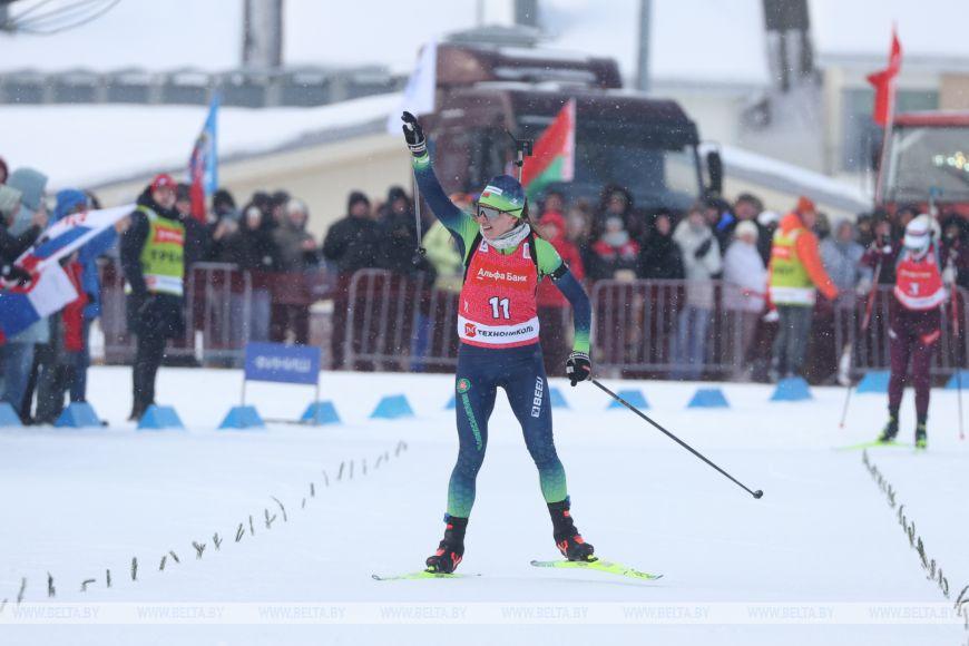 После последнего огневого рубежа третьей на дистанцию уходила Динара Смольская, однако на заключительном круге ей не хватило сил — белоруска заняла седьмое место. Бронзовую награду завоевала Анастасия Халили, которая на считанные доли секунды опередила лидера общего зачета Кубка Содружества Кристину Резцову.