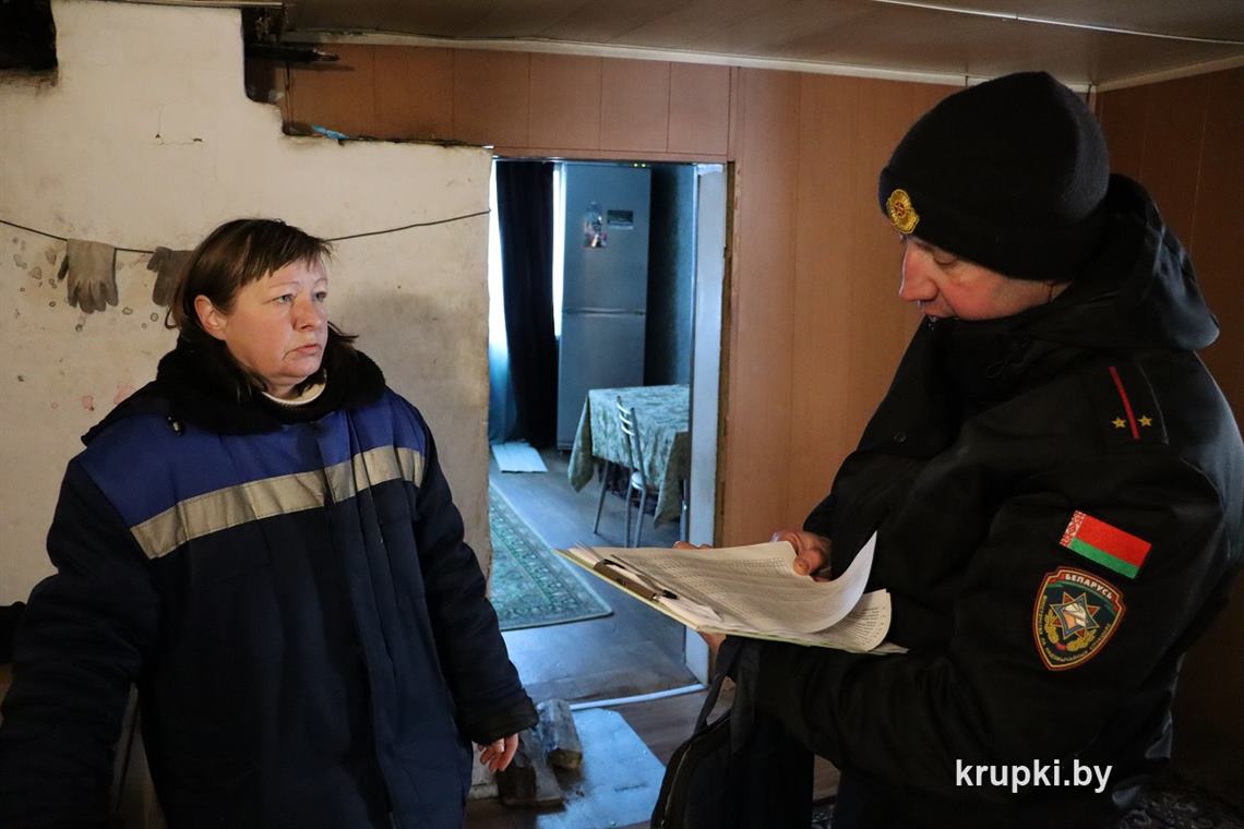 По прибытии в поселок Крупский Ирина Шабловская скоординировала работу групп. Был проведен небольшой инструктаж. Председатель сельисполкома Сергей Хацкевич раздал списки категорированных граждан. Все направились по указанным адресам. Традиционно в поле зрения спасателей одинокие, одиноко проживающие граждане, инвалиды, злоупотребляющие, СОП.