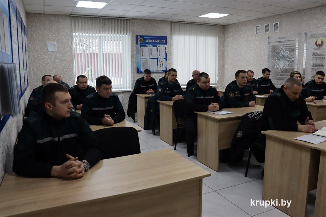 «Ученики» школы, а это спасатели Крупского, Борисовского, Березинского гарнизонов и г. Жодино, в числе которых первые заместители начальников отделов, начальники подразделений, начальники дежурных смен, оперативные дежурные ЦОУ, прибыли на первый «урок» в учебный класс пожарной аварийно-спасательной части №1 г. Крупки. Здесь провели обзор боевой работы, обсудили тушение выборочных пожаров за прошедший год, разобрали недостатки, которые выявляются в ходе проведения проверок подразделений. Также во время занятия обсудили особенности тушения пожаров и ведение аварийно-спасательных работ на объектах с массовым пребыванием людей, вопросы организации и проведения мероприятий, связанных с пожароопасным периодом, решали тесты и практические задачи.