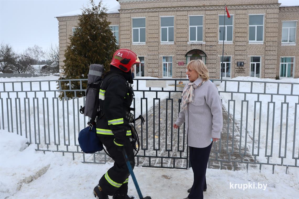 Второй «урок» – практический – прошел в учреждении образования «Средняя школа им. В.О. Криштопенко пос. Крупский». Тема актуальна: «Ведение аварийно-спасательных и иных неотложных работ при ликвидации ЧС на объектах учреждения образования». Цель занятий – проверить боеготовность, а также навыки аварийно-спасательных и других неотложных работ при ликвидации ЧС с использованием специального аварийно-спасательного инструмента.