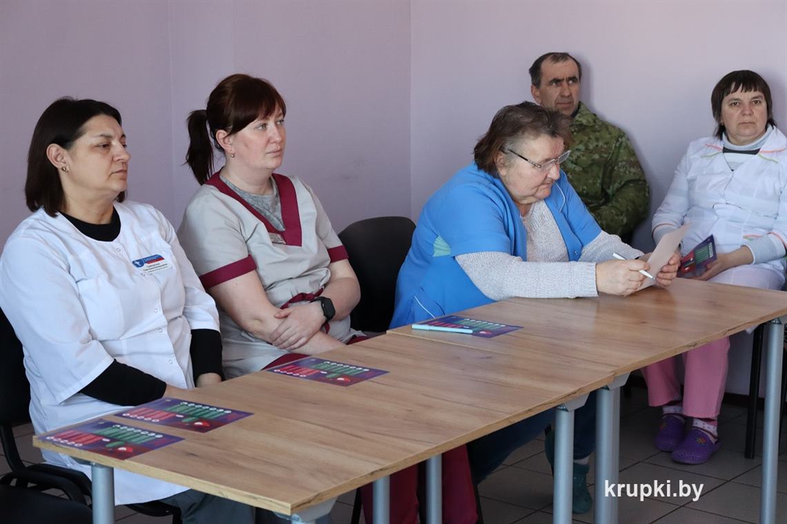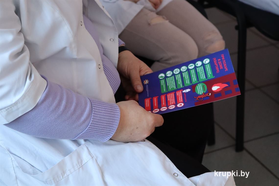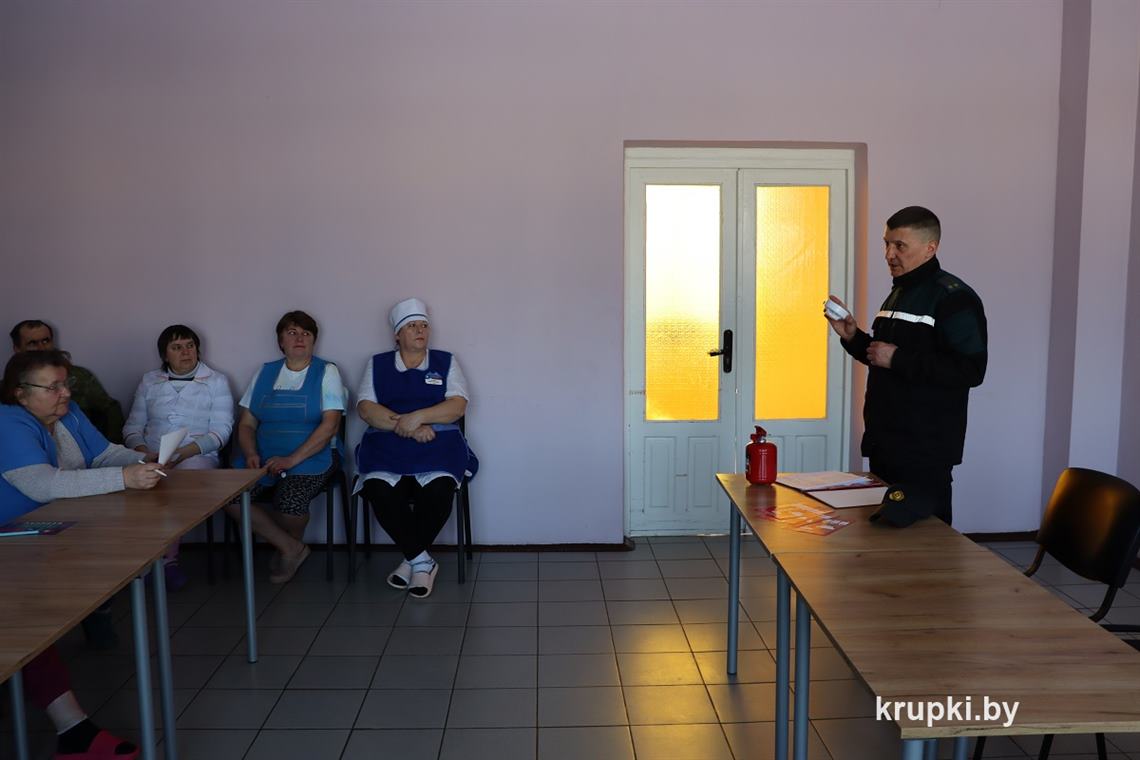 В рамках акции «За безопасность вместе!» начальник Крупского районного отдела по ЧС Дмитрий Гуринович говорил о безопасности с работниками УЗ «Холопеничская горпоселковая больница». Во время выступления спасатель акцентировал особое внимание на увеличение числа пожаров, призвав граждан быть ответственными.
