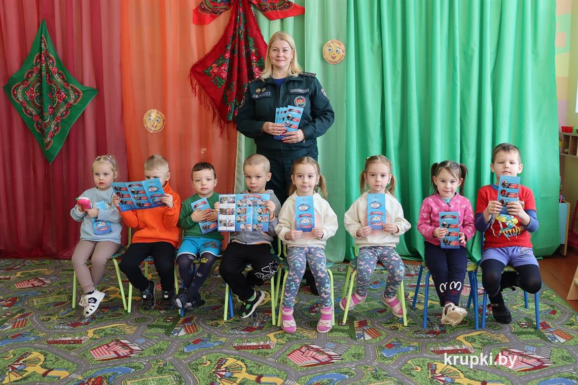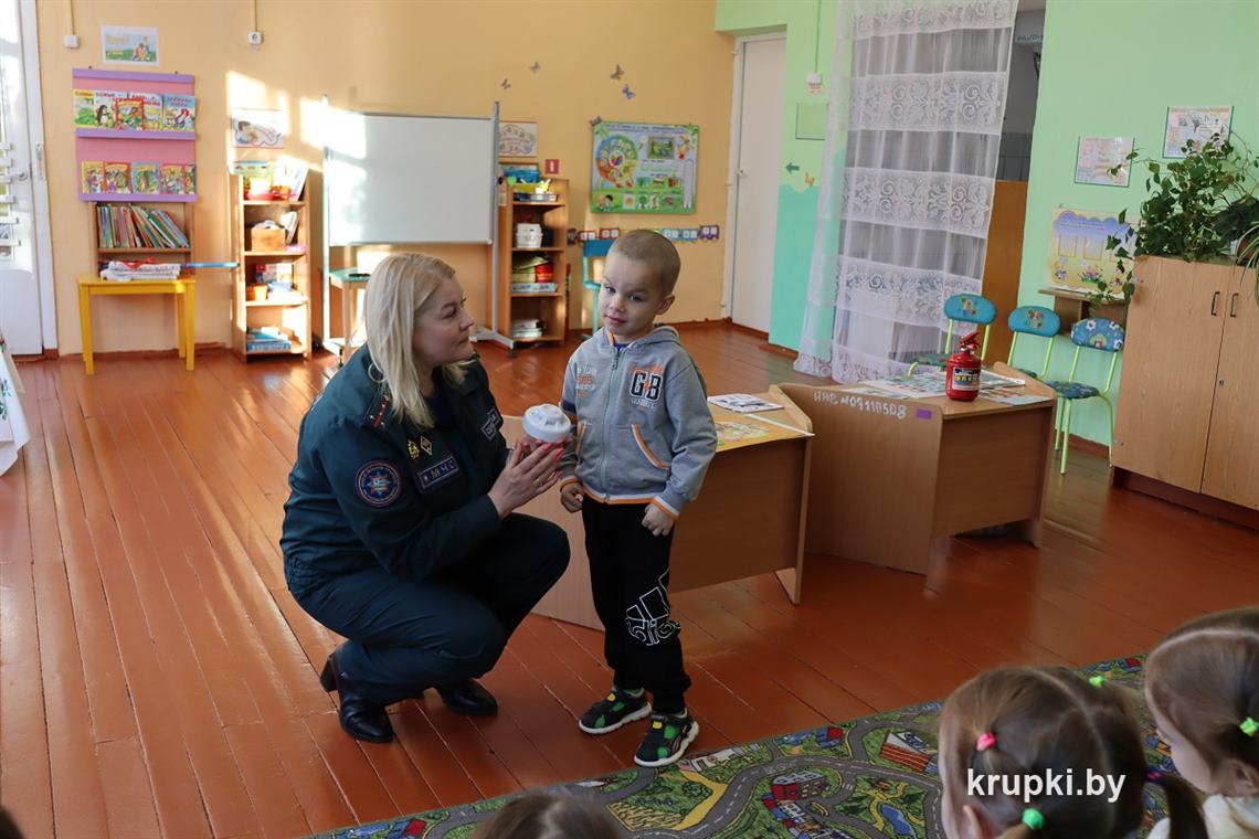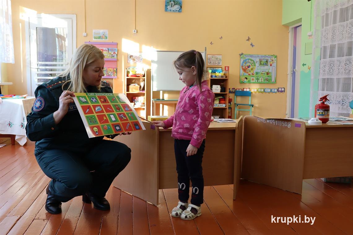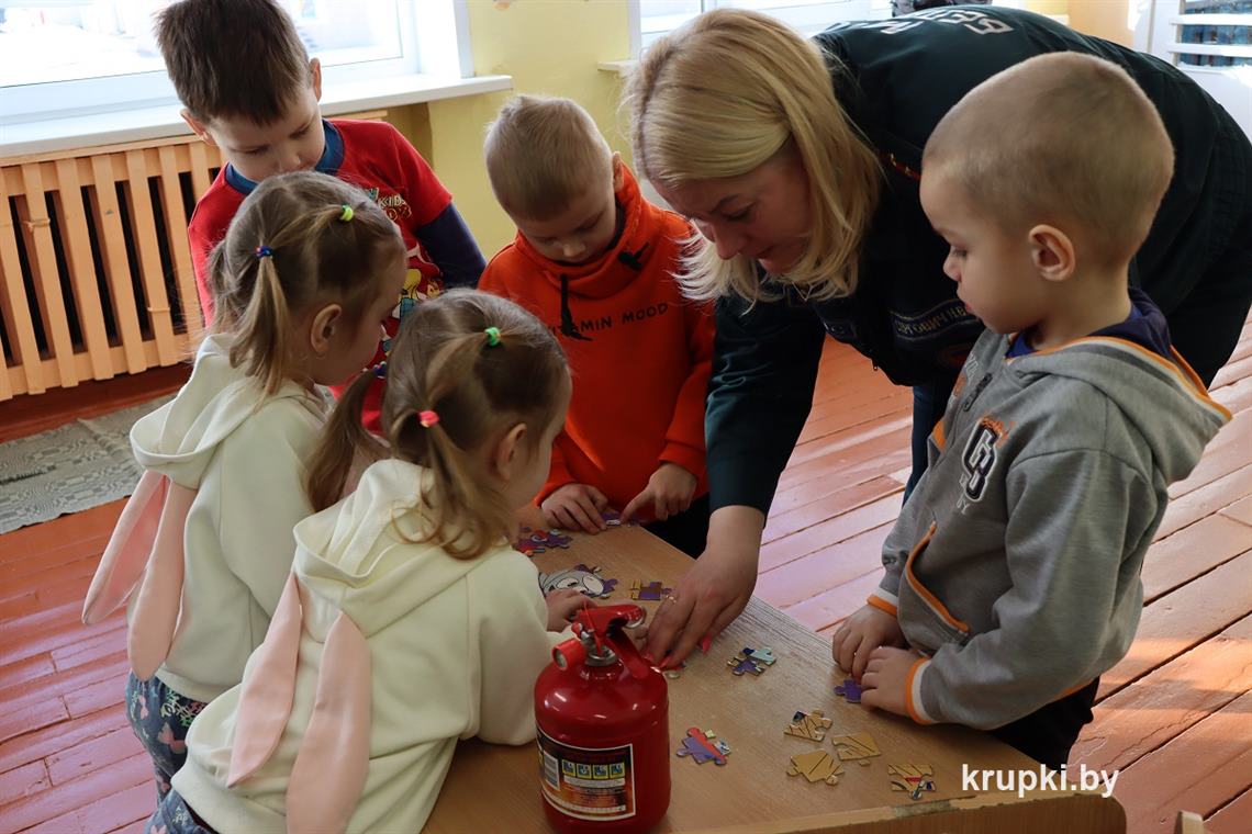 Для проведения обучающих занятий инспектор пропаганды Крупского райотдела по ЧС Наталья Сергович выехала в агрогородок Замки. Первая встреча состоялась с дошколятами Колосовского детского сада. В ходе поучительной беседы ребята узнали о различных опасных ситуациях, в которые они могут попасть, не соблюдая правила безопасного поведения.