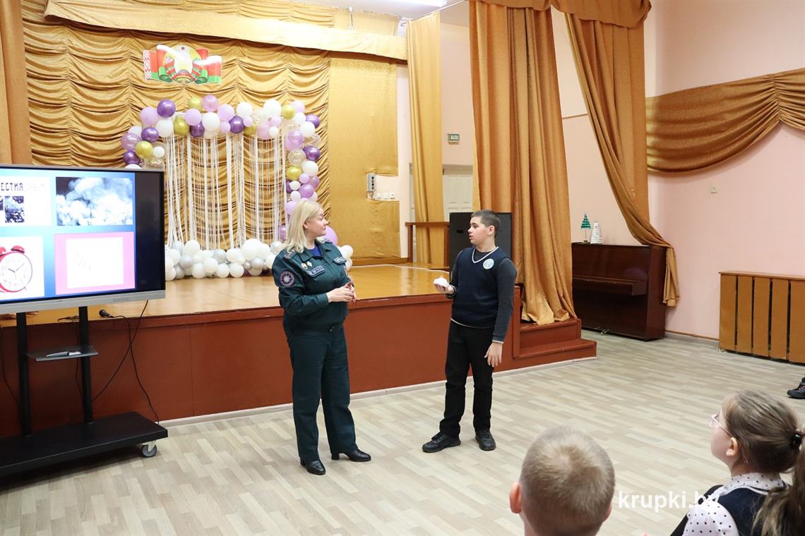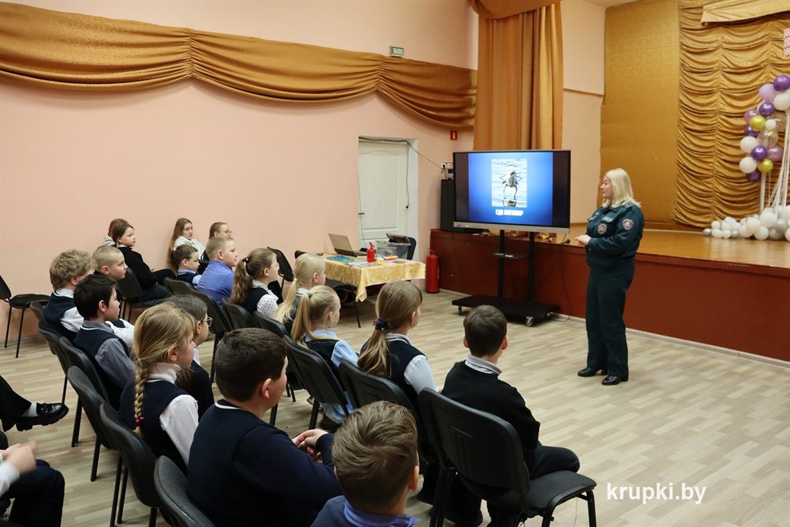 Далее уроки безопасности прошли в Колосовской средней школе. Для учащихся начальной школы инспектор МЧС провела интерактивную игру «Где логика», в ходе которой обсудили и основные причины пожаров, и правила безопасности в доме, на улице, отработали алгоритм поведения при пожаре, закрепили знания в игре «Вызов экстренных служб». Завершилось занятие просмотром мультфильма о правила безопасного поведения на зимнем водоеме.