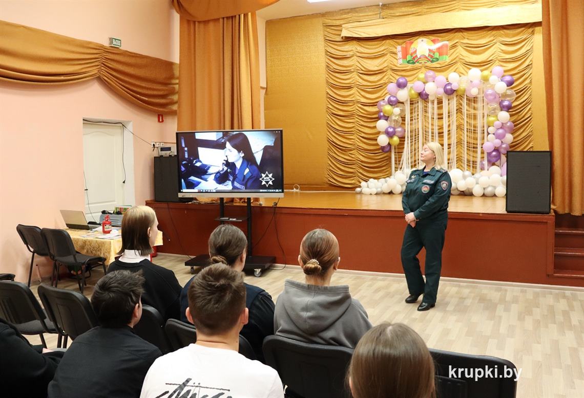 Для учащихся старших классов прошел урок по профориентации. После просмотра ролика о спасательном ведомстве, инспектор рассказала о профессии спасателя, учебных заведениях МЧС и условиях поступления. На память учащиеся получили наглядную изобразительную продукцию.