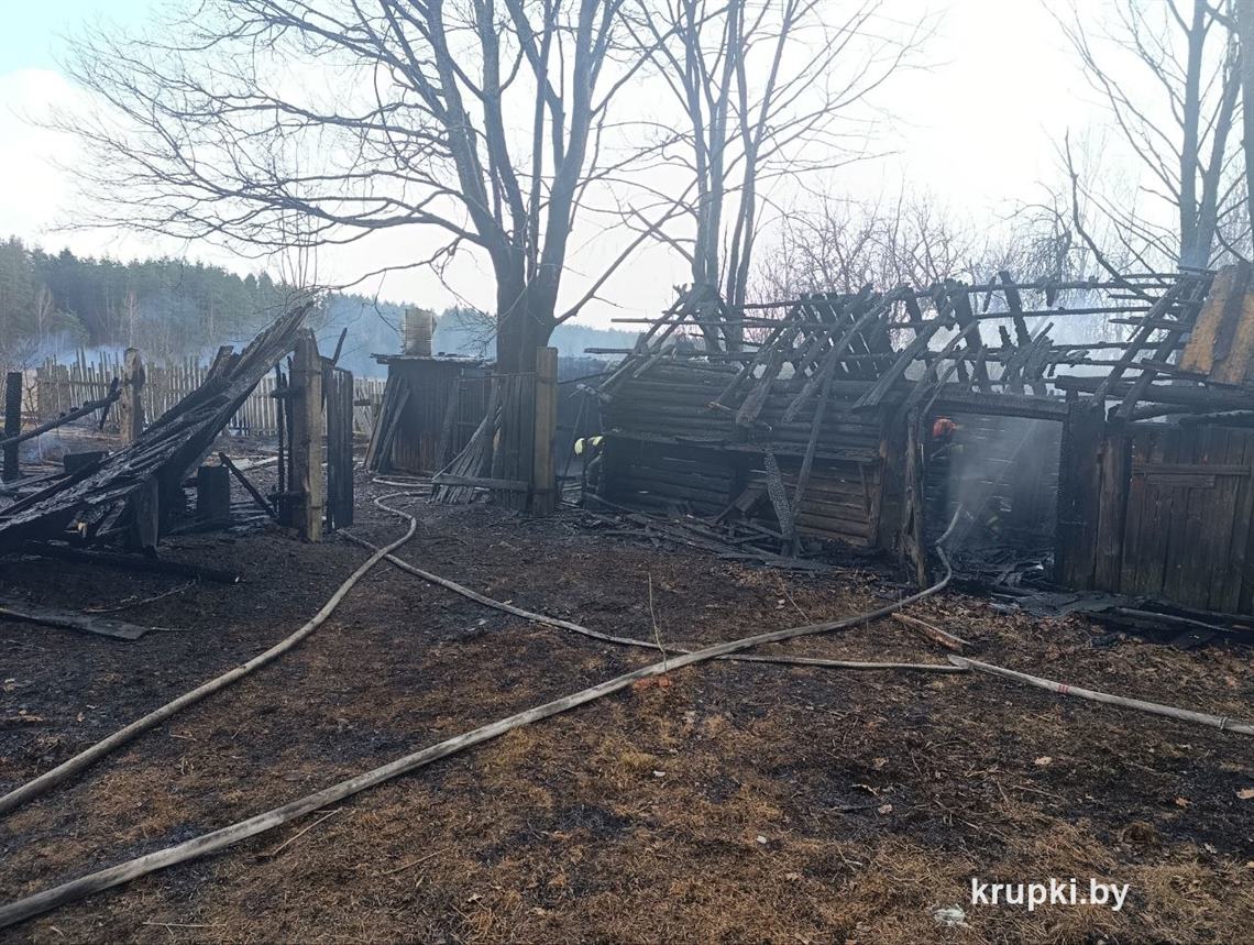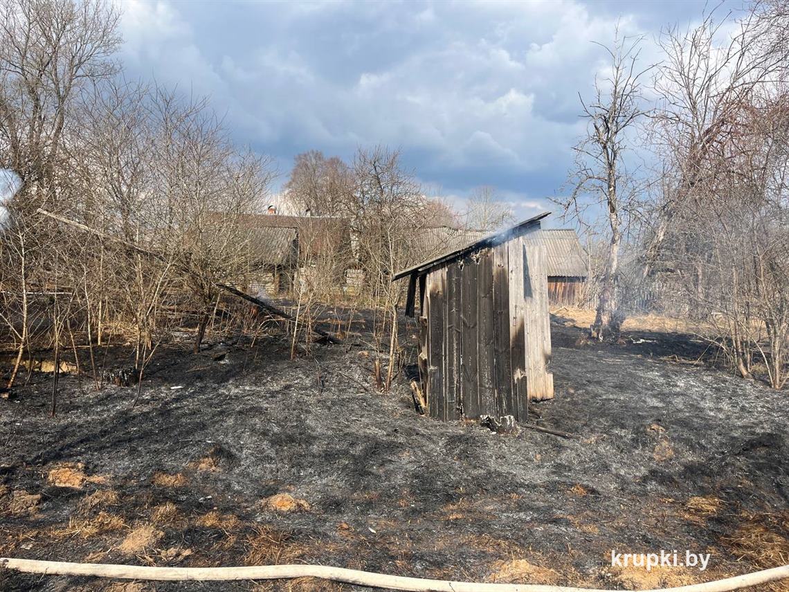 Однако, учитывая сухую и ветренную погоду, огонь повредил 2 надворные хозяйственные постройки размерами 3х4 м и 12х4 м, повреждена деревянная баня, баня выгорела изнутри.
